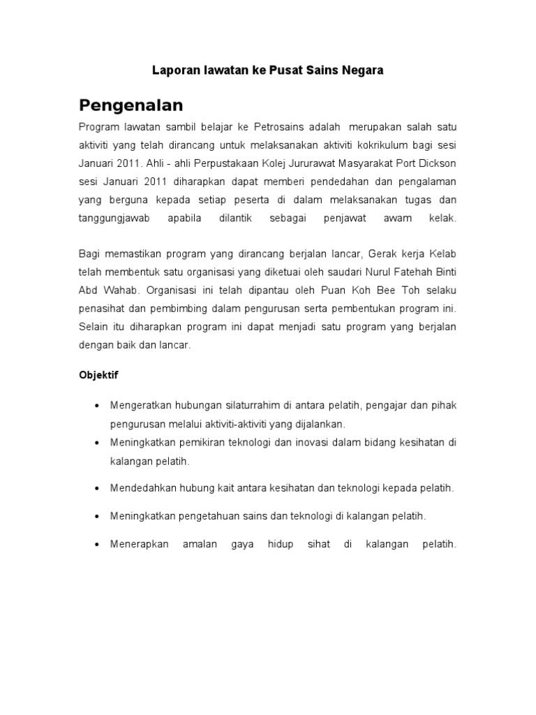 Contoh Karangan Laporan Lawatan Ke Tempat Menarik Contoh Lem Cute766