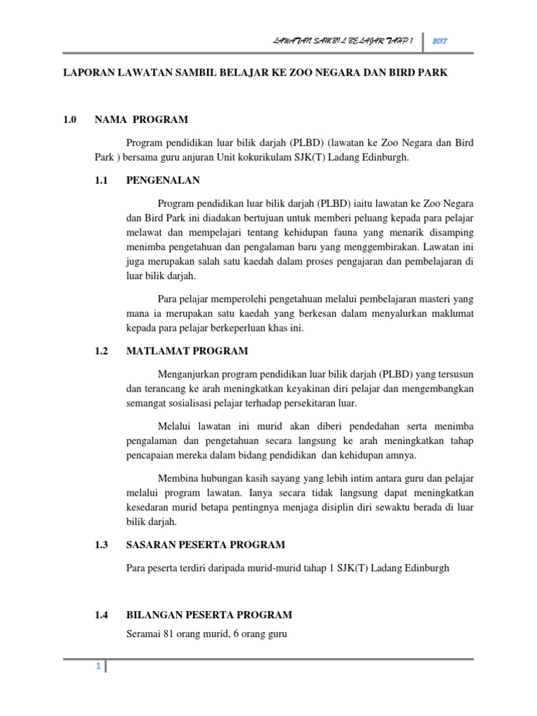 Contoh Karangan Laporan Lawatan Sambil Belajar Ke Zoo Negara Contoh Qi