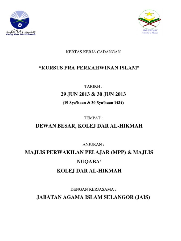 Majlis agama islam selangor kursus kahwin. Status perkahwinan alamat di selangor tidak perlu tekan enter untuk memasukan alamat daerah sila pilih petaling gombak klang kuala langat sepang hulu langat kuala selangor hulu selangor sabak bernam lain lain. Kursus pra perkahwinan islam online kppi online ini akan mula dilaksanakan bermula 13 jun 2020 sabtu walaupun pkpb telah tamat selepas ini. Pengumuman ini dibuat oleh jabatan agama islam selangor jais sendiri. Permohonan boleh dibuat mulai 9 jun 2020 selasa.