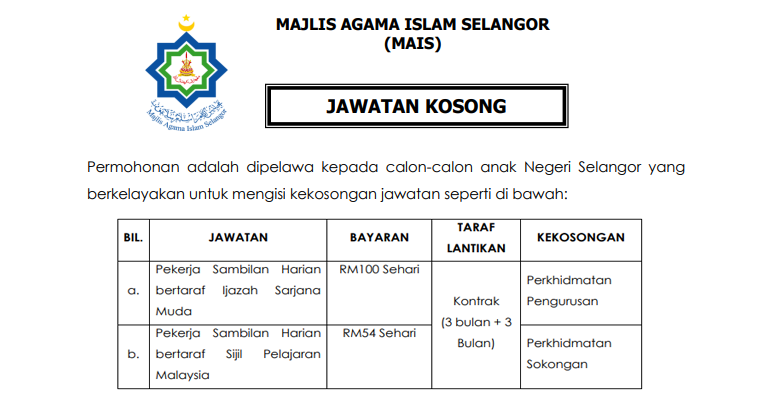 Jawatan Kosong Di Majlis Agama Islam Selangor Mais Jobcari Com Jawatan Kosong Terkini