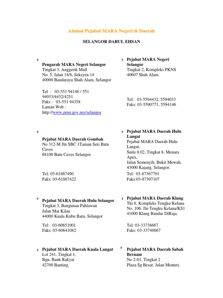 Pejabat Mara Daerah Hulu Selangor No 16 Tingkat Bawah Jalan Kamarudin Kuala Kubu Bharu 2020
