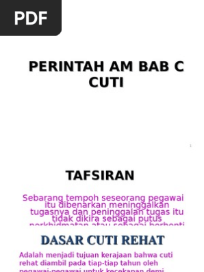 Pengurusan Kemudahan C U T I Pegawai Perkhidmatan Awam Perintah Am Bab C Tahun Pdf Free Download