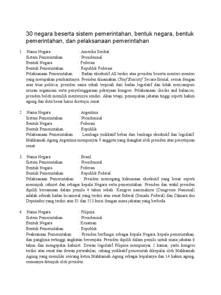 Doc Sistem Pemerintahan Di Berbagai Negara Gabriela Ayu Academia Edu